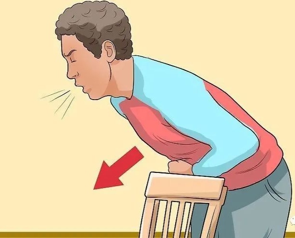 稍稍弯下腰去,靠在一固定的水平物体上(如桌子边缘、椅背、扶手栏杆等),以物体边缘压迫上腹部,快速向上冲击。重复之,直至异物排出。