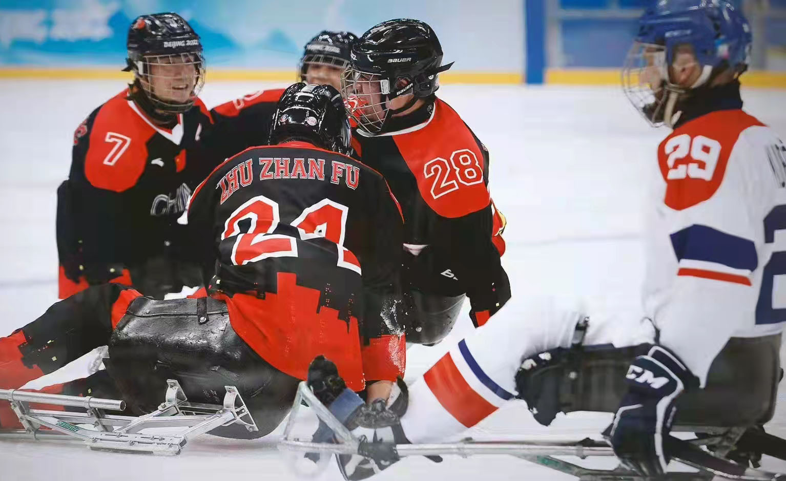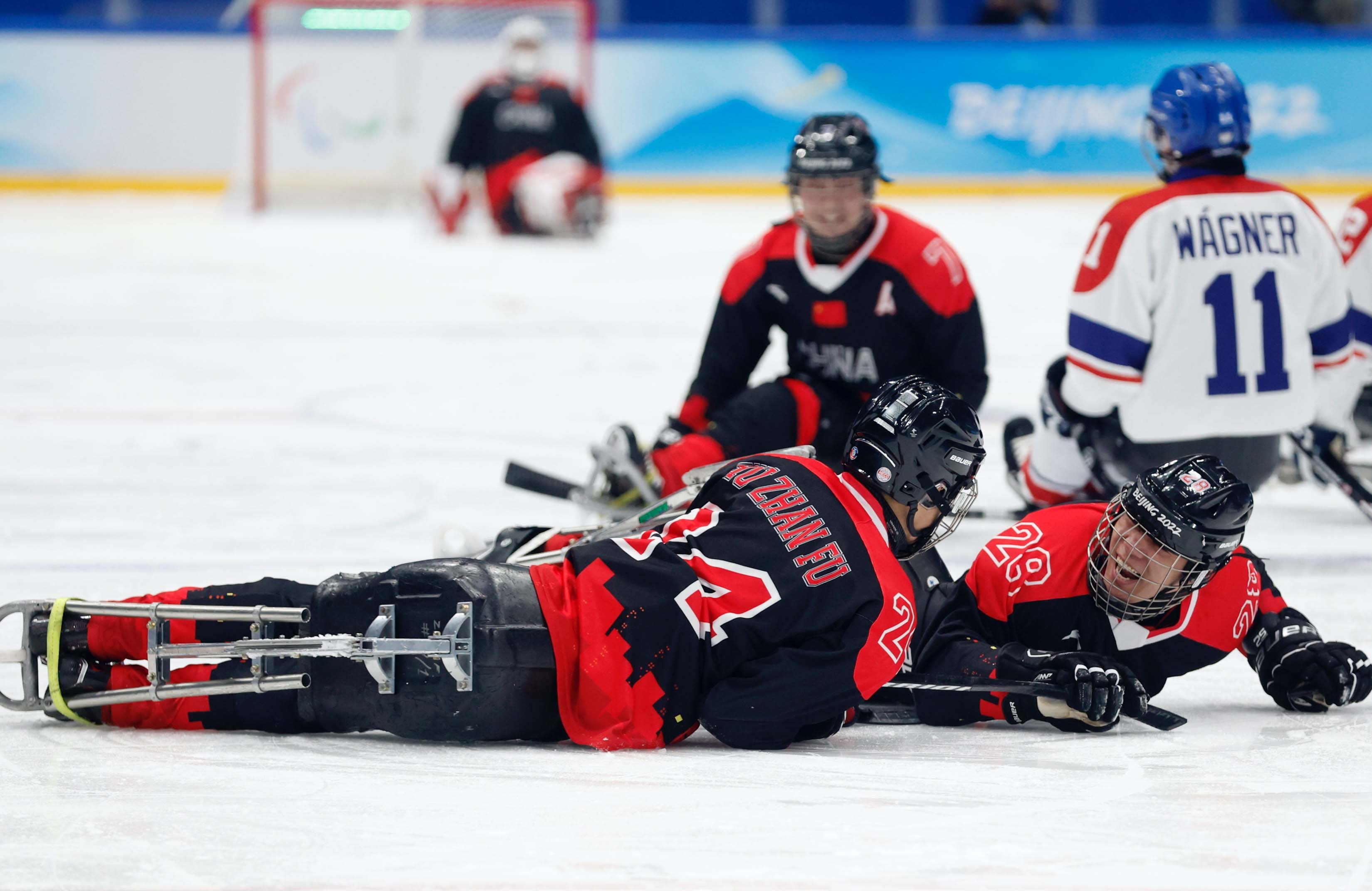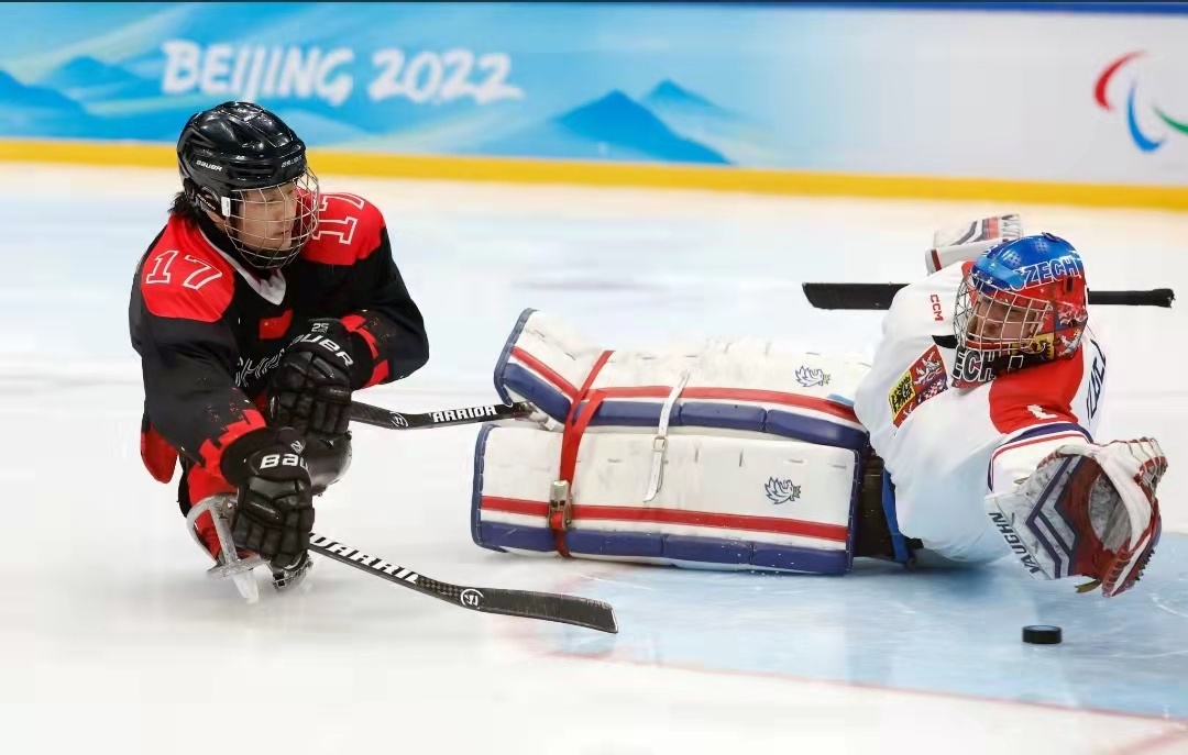 3月6日晚,北京冬残奥会残奥冰球项目迎来第二个比赛日,中国队继5日晚上7:0大胜斯洛伐克队之后,又以5:2战胜捷克队,取得两连胜。中国队小组出线,进入下一轮晋级赛。(大众日报客户端记者 薄克国 通讯员 迟文武 报道)