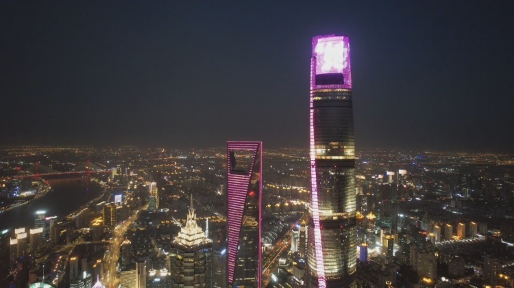 晚上六时许,夜幕降临,华灯初上。东方明珠、上海中心、环球金融中心、金茂大厦、震旦大厦等浦东滨江地标建筑群,同时亮起粉色灯光。上海之巅的巨幅电子屏打上了“新时代‘她’力量”的庆祝口号。