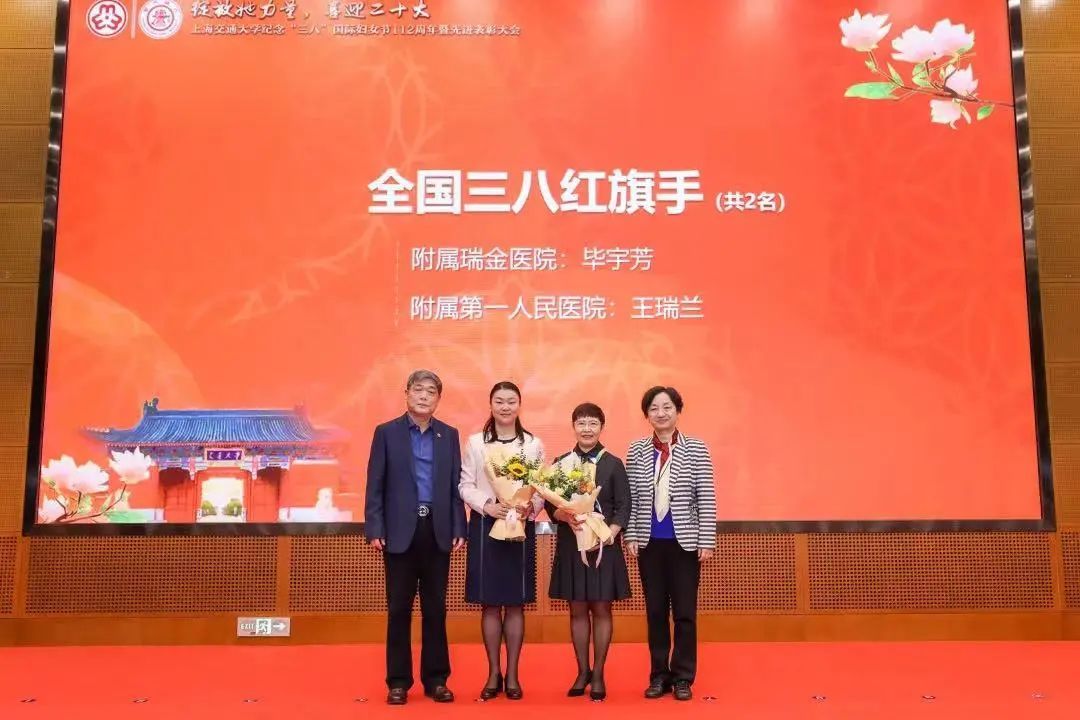 在过去一年中,交大女教职医务员工奋发作为,取得新的优异成绩,共有64位个人、28个集体荣获国家级、市级或校级荣誉。与会领导分别为获奖个人和集体代表颁发证书、赠送鲜花。两位获奖代表作现场交流发言,充分展现了交大女同胞们立足岗位、更创佳绩、热爱生活的智慧与风采。校党委书记杨振斌要求,全校上下要进一步形成关心关爱女性的良好环境和氛围。希望学校各级各类妇女组织继续发扬优良传统,进一步增强组织活力和凝聚力,带领和帮助全体交大女同胞们在奋进中出彩,在奉献中闪光。