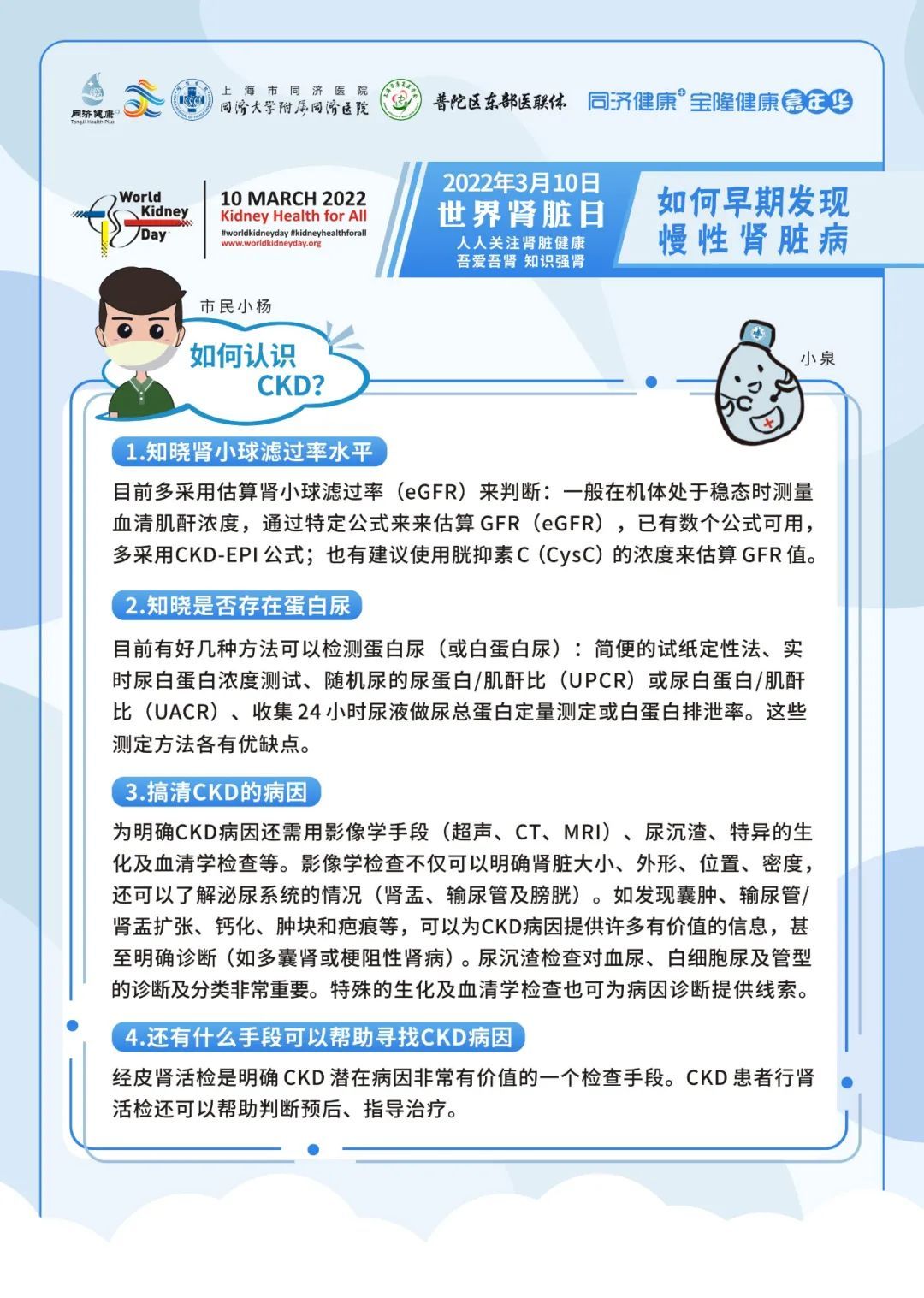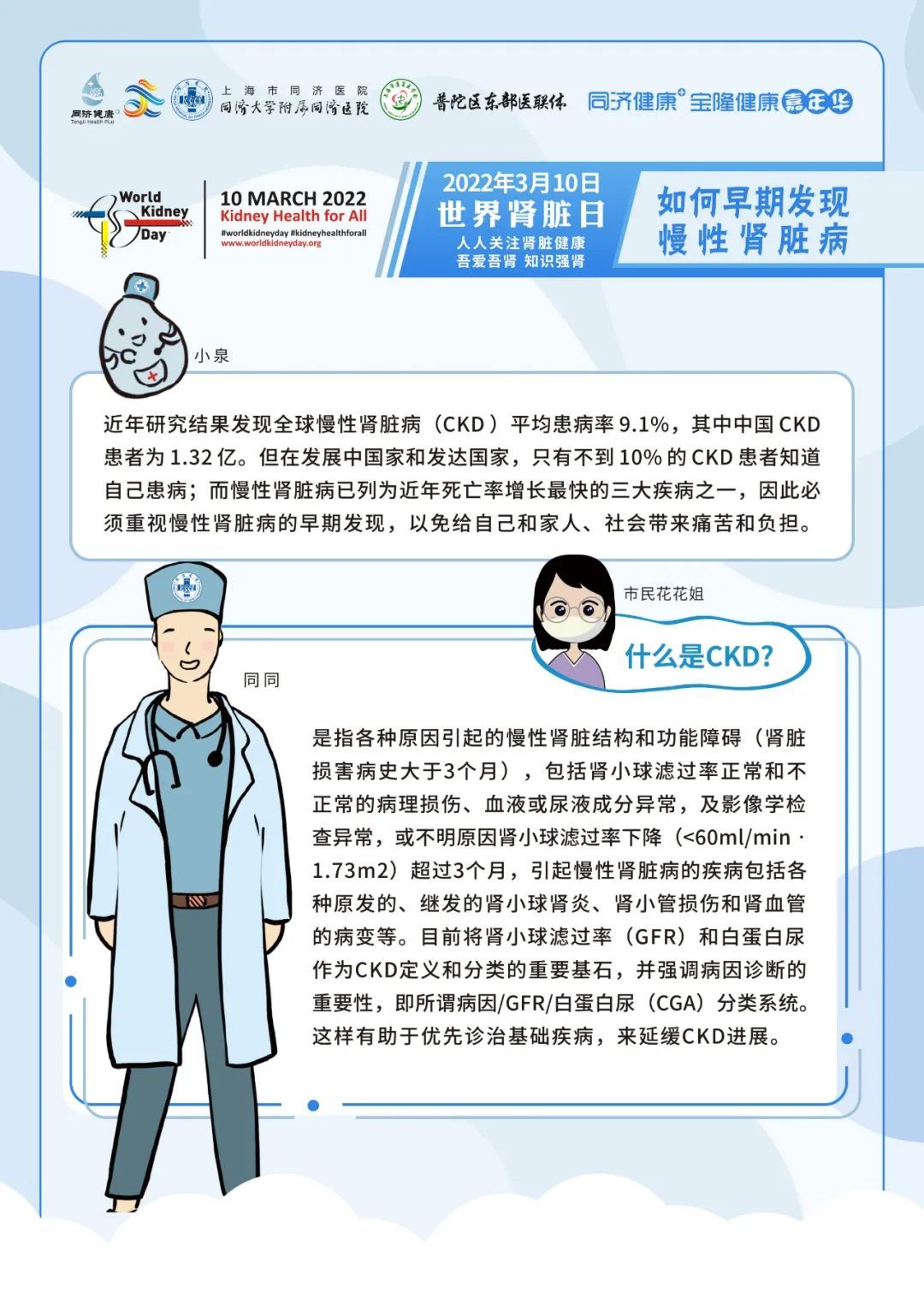 2022年3月10日是第十七个“世界肾脏日World Kidney Day”,今年肾脏日的主题是“人人关注肾脏健康-吾爱吾肾,知识强肾(Kidney Health for All: Bridge the knowledge gap to better kidney care)”。