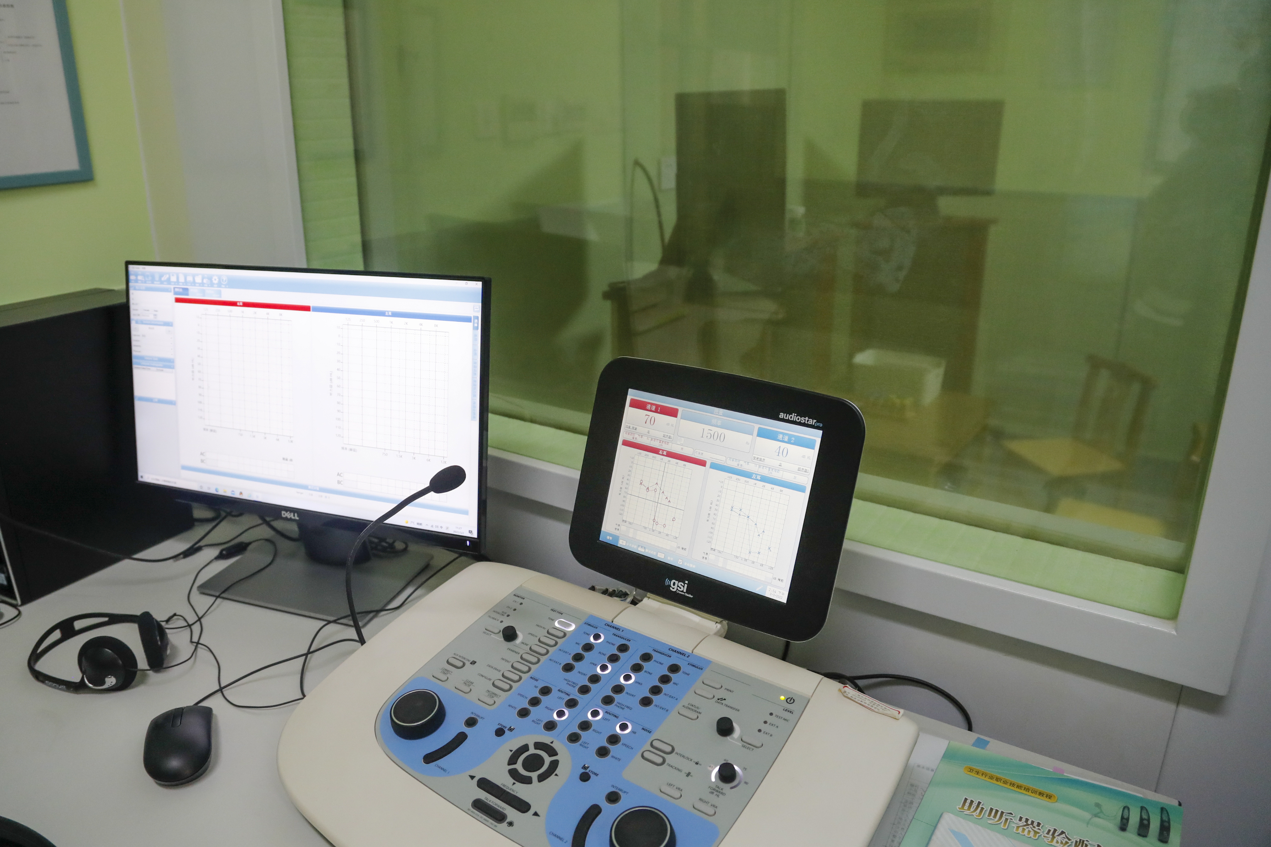 在四聋的教学理念中,康复引领四大核心之首,学校有着和医院相同的专业听力检测设备。借助这套设备,可以对学生进行听力检查,去监控他们听力的变化。“一来观察他本身的听力有没有下降,然后再检查助听器和人工耳蜗的效果,毕竟是电子产品,时间长了要去监控它的效果,如果发现问题我们会及时进行解决。”一位老师介绍说,“在测听室里,学生只要带上耳机,就能接受一系列的听力检测,再根据声音做出相应反应,以此来评估他们的听力状态。”