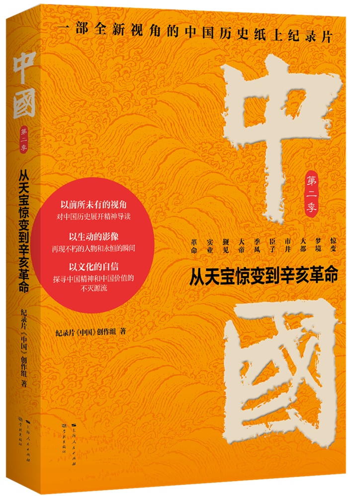 由上海人民出版社、学林出版社出版的《中国:从天宝惊变到辛亥革命》近日面世。该书以湖南卫视、芒果TV正在热播的纪录片《中国》第二季为蓝本,在第一季《中国:从春秋到盛唐》之后继续展开讲述,从唐代天宝年间讲起,到五代乱局与元明清的大一统,直至近代辛亥革命为止,选取多位历史上的经典人物,从“人”的角度看历史演变,旨在铭刻千年中国文明灯火,启迪并照亮未来。
