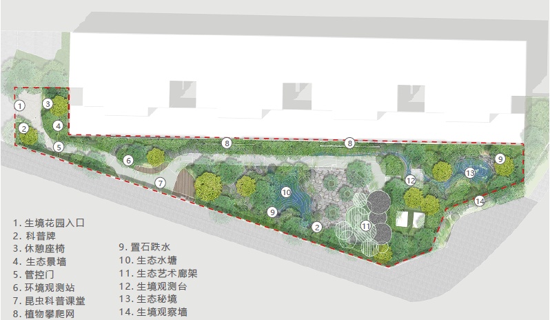 “生境花园的使用者更多的是老人与儿童,希望保留场地内原有的大树用以遮阴。”