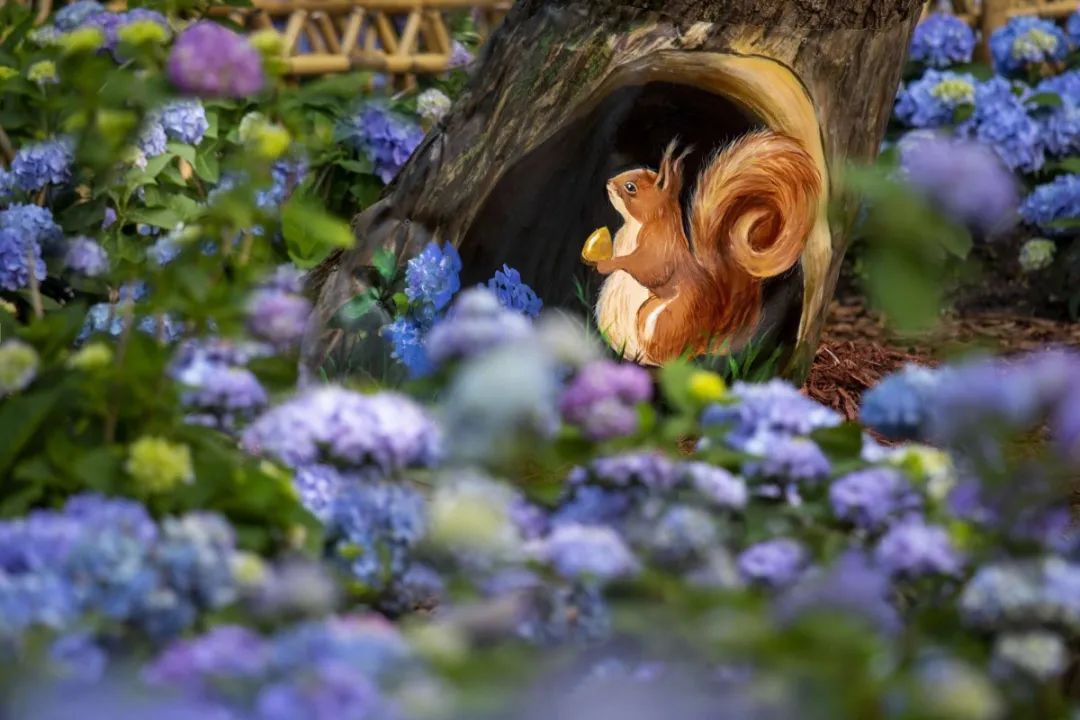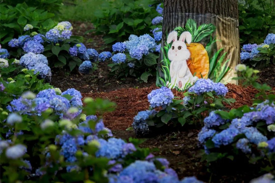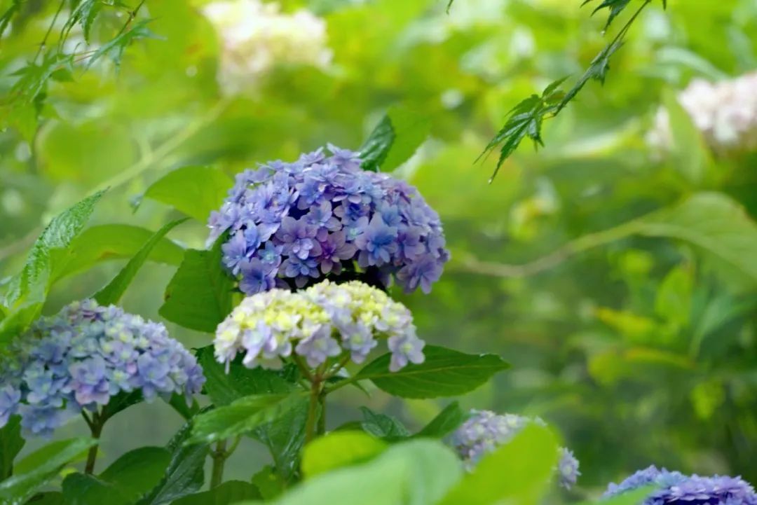 八仙花的足迹遍布公园,潺潺的溪流边上、浓绿的树林底下、茂密的草甸之中、嶙峋的奇石之间,八仙花几乎与整个公园融为了一体,与马鞭草、白花车轴草、鱼腥草等野花野草一起,共同呈现出共青森林公园自然野趣的森林魅力。