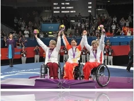 2012年,已40岁的她又披挂上阵,参加伦敦残奥会,这次她不负众望,夺得了女子花剑B级金牌、女子团体重剑金牌。成为金山历史上,第一位残奥会冠军!而在四年后的里约残奥会,她拼劲全力,夺得一枚铜牌,再次为国争了光。