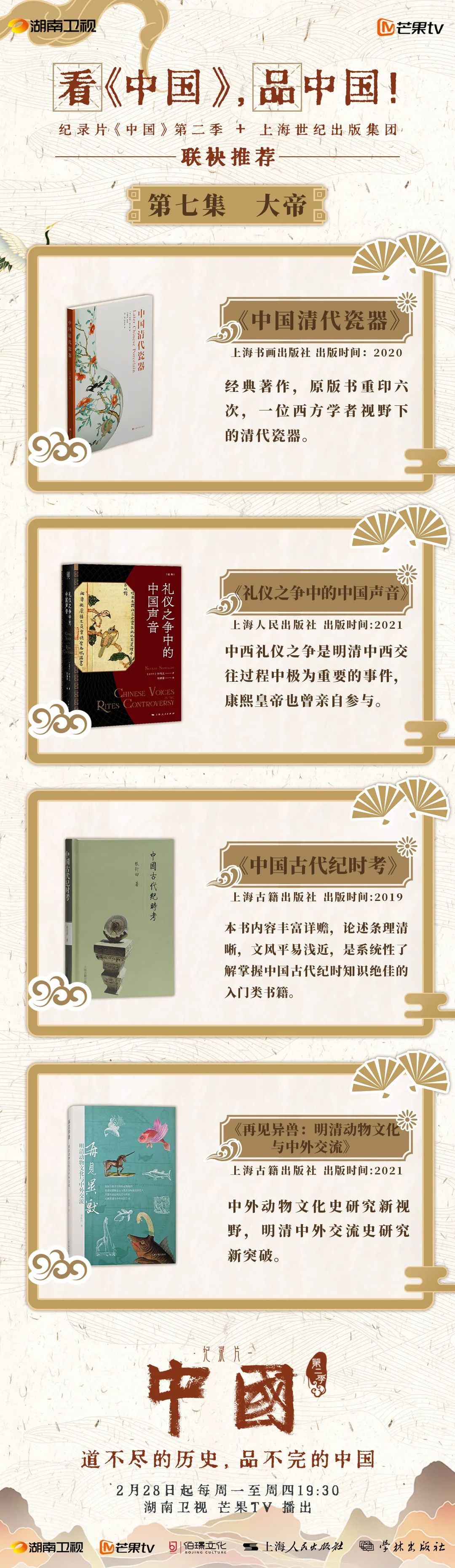 为帮助广大观众和读者更好地看《中国》,品中国,纪录片《中国》第二季联合上海世纪出版集团,每集节目推出相关书单作为拓展阅读。推荐书单将在节目播出当天联袂发布,敬请期待。