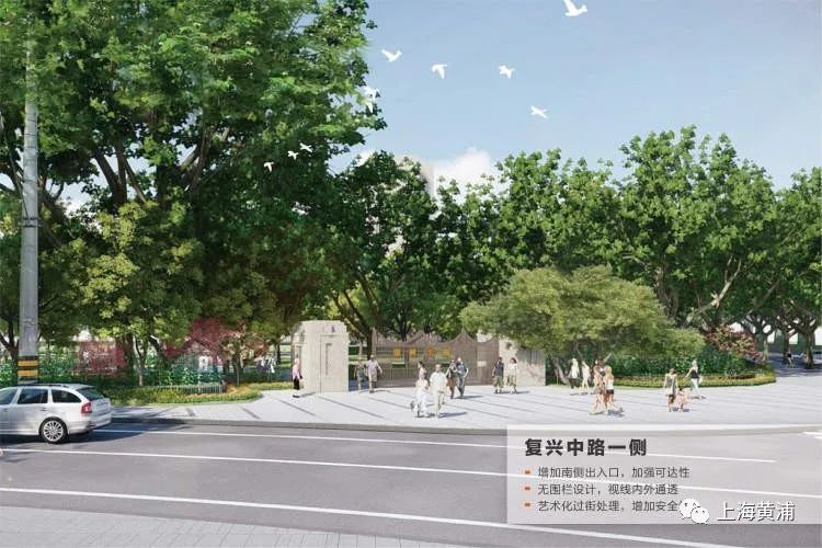 拆除围墙后,在街区上不仅可以看到公园内的景观,在重庆南路、复兴中路的绿化带内都会新建步道,方便市民游客进入公园。
