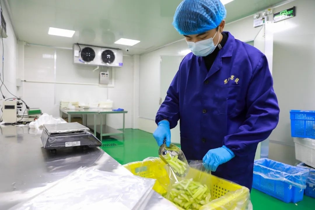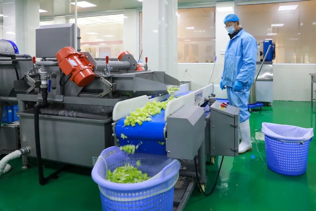 经过1年多的准备,这个占地约600平方米的车间于今年1月正式投入使用,可以加工芹菜、青菜、白菜等绿叶菜和根茎类蔬菜半成品,日处理量最高能达到15吨。