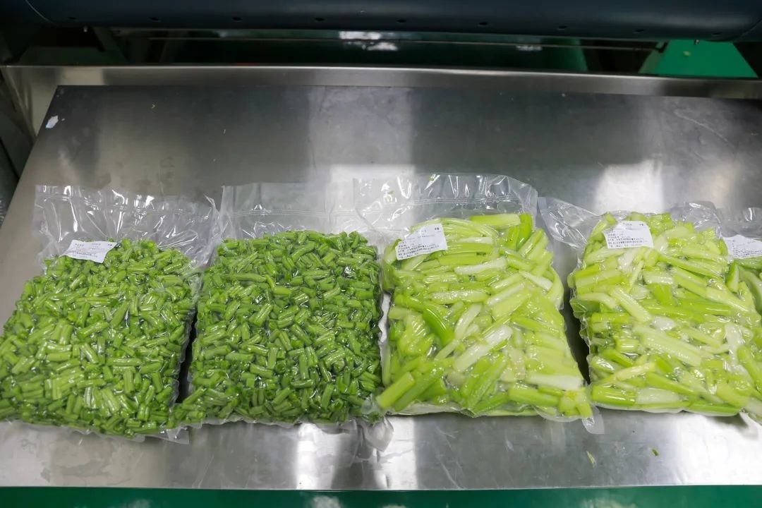 目前,合作社主要面向企业、单位、学校等大型食堂提供净菜。每天早上统计出食堂需求量和切配要求,再安排工人采摘,送入加工区域。真空包装后存放保鲜库,由基地18辆冷藏车直接配送至食堂。有了这套净菜加工设备,蔬菜的清洗、切配、包装一条龙到位,不仅省时、省工、省钱,还能在保证食材规格标准的同时,保持食品卫生、干净、安全。