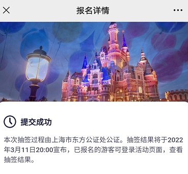 同时,公证员使用公证处设备对上述抽奖的全过程进行录像固定,确保整个抽签过程的公正、客观、完整。完成抽签后,主办方在官方微信公众号上向参与抽签的游客发布了抽签结果,并引导中签游客在指定日期和时间段内前往迪士尼小镇的等候区域,按照中签排队号有序进行排队购买。