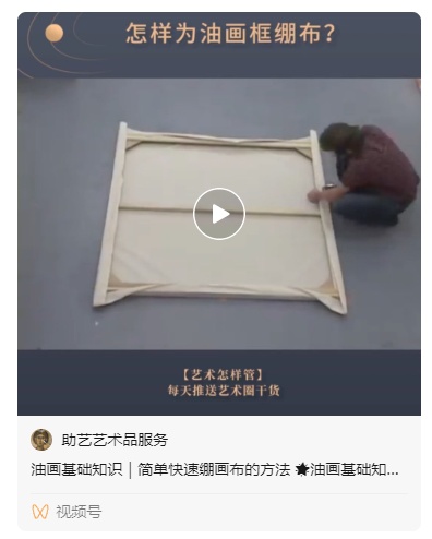 画芯完成后,需要将画布绷在油画内框上,起到将油画布支撑起来的作用,更好地保持油画的平面展示效果,这一步叫“油画绷框”。