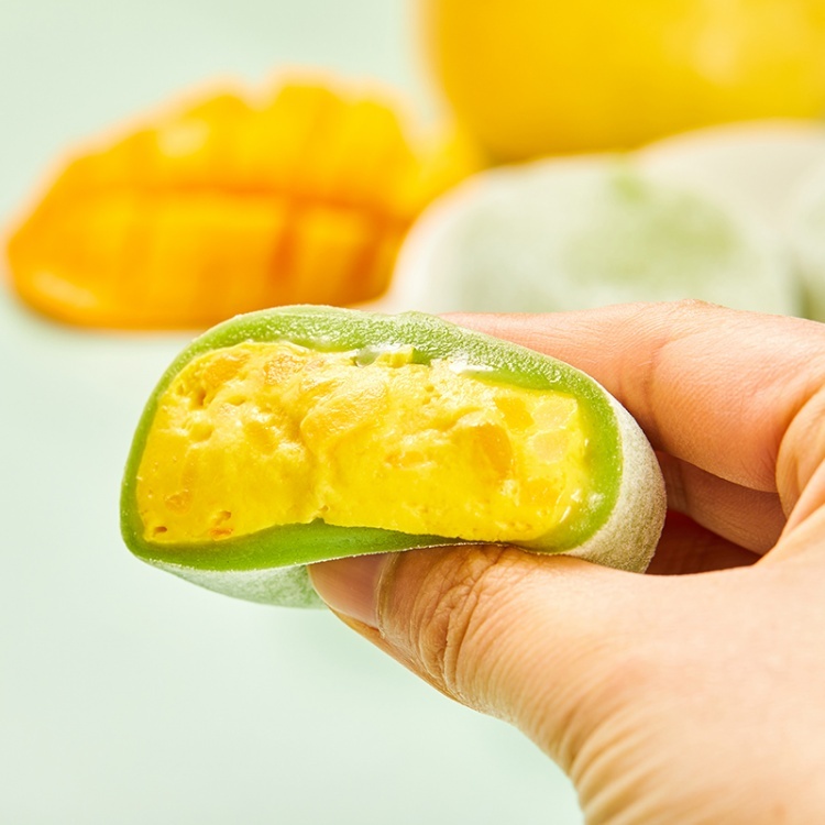杨枝甘露青团,将年轻人喜欢的奶茶”杨枝甘露“做成了馅芯,酸甜醇香、清甜不腻,是冷冻的,口感像冰淇淋,非常受年轻人的喜欢。