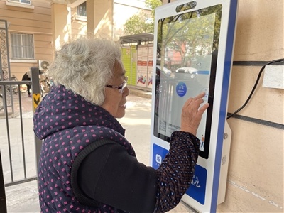 “这台机器屏幕大,看得清,操作简单,实在不行保安师傅还能帮我们,现在叫出租车方便多了。”东明路街道品翠苑居民区的郭阿姨说道。她正在使用的机器正是“一键叫车”智慧屏平台,居民区党总支为了消弭老人打车的“数字鸿沟”,引进了该平台,聚多方合力为居民办实事。