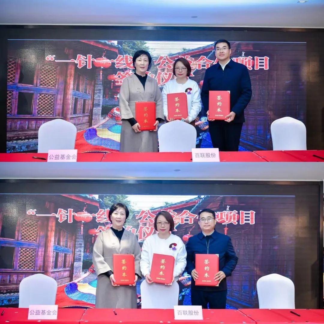 3月8日,“一针一线”公益项目合作签约暨启动仪式在位于南京路的第一百货商业中心七楼举行。上海现代服务业发展研究基金会理事长吴荷生、秘书长杨军、副秘书长侯雅宏,云南省丽江市玉龙县委常委、副县长孙勇,楚雄州永仁县委常委、县委宣传部部长李治先,百联集团工会副主席祁月红,百联股份党委副书记、工会主席王珏出席活动。现场,王珏代表企业与上海现代服务业发展研究基金会、云南玉龙县和永仁县人民政府签署合作备忘录。各界嘉宾与百联股份的女店长、女劳模们在“中华商业第一街”连线千里之外的绣娘姐妹,为勤劳喝彩,为美好助力。