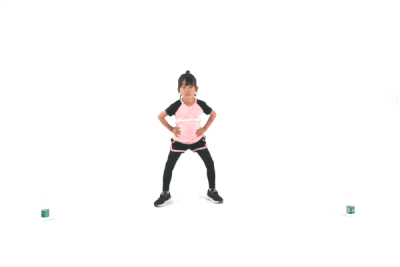 放两个矿泉水瓶,两水瓶之间的距离可根据情况自行掌握。让孩子使用侧滑步在两水瓶之间进行快速移动。进行10-20次。