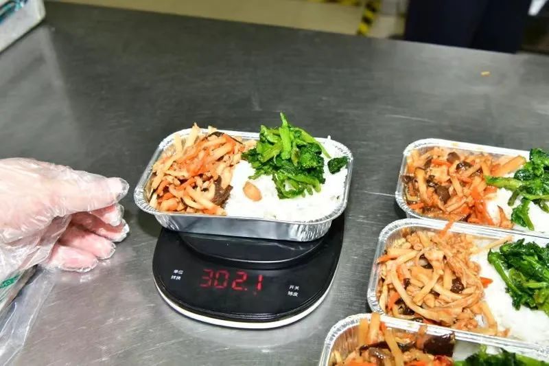 每一份航空配餐在设计时都有标准的餐谱,涉及原料的品种,份量和摆放的工序,员工在制作时都要首先按照餐谱的标准制作首样,对产品中的每一种食材用台秤进行称重,确保批量制作时的准确性。