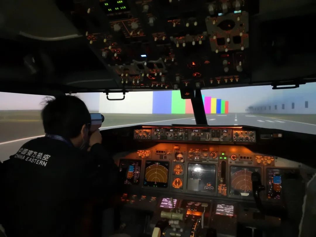 在完成视景系统几何校准后,我们会使用光度计对视景图像进行光点亮度、光点对比度、表面亮度、表面对比度、黑度和序列对比度等测试,确保模拟机视景系统符合CCAR60部规章要求,从而为飞行训练提供更为逼真的视觉效果和沉浸感。
