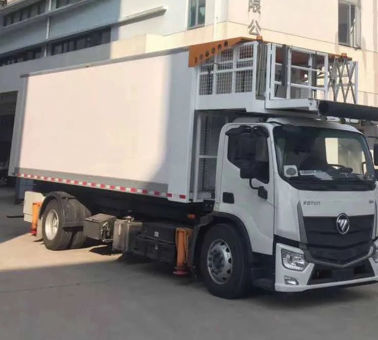 图中的这款食品车也是由上海东方航空设备制造有限公司生产制造的,它拥有一个巨型车厢,车厢可以平行向上升举,连接飞机舱门,飞机餐就装在一个个手推车里推进机舱。P.S.这些手推车都是经过安检签封的哦~严格保障了乘客们的用餐安全。