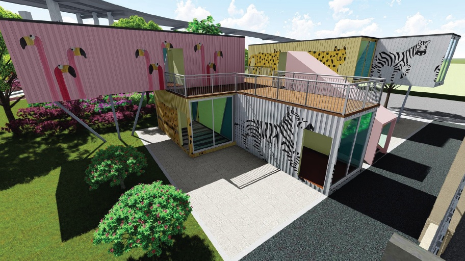 据介绍,街心花园南侧设有集装箱房,一层为道班房,二层为休息驿站,方便居民休憩。未来,长宁区绿化市容局还将在集装箱房的表面喷涂斑马、火烈鸟、猎豹等纹样,与周围桥下空间的景观主题呼应。
