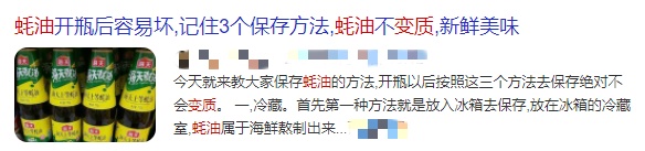 所以大家在购买蚝油时,尽量选择小瓶装蚝油,缩短存放的时间,开盖后一定要放冰箱冷藏,并尽快食用。