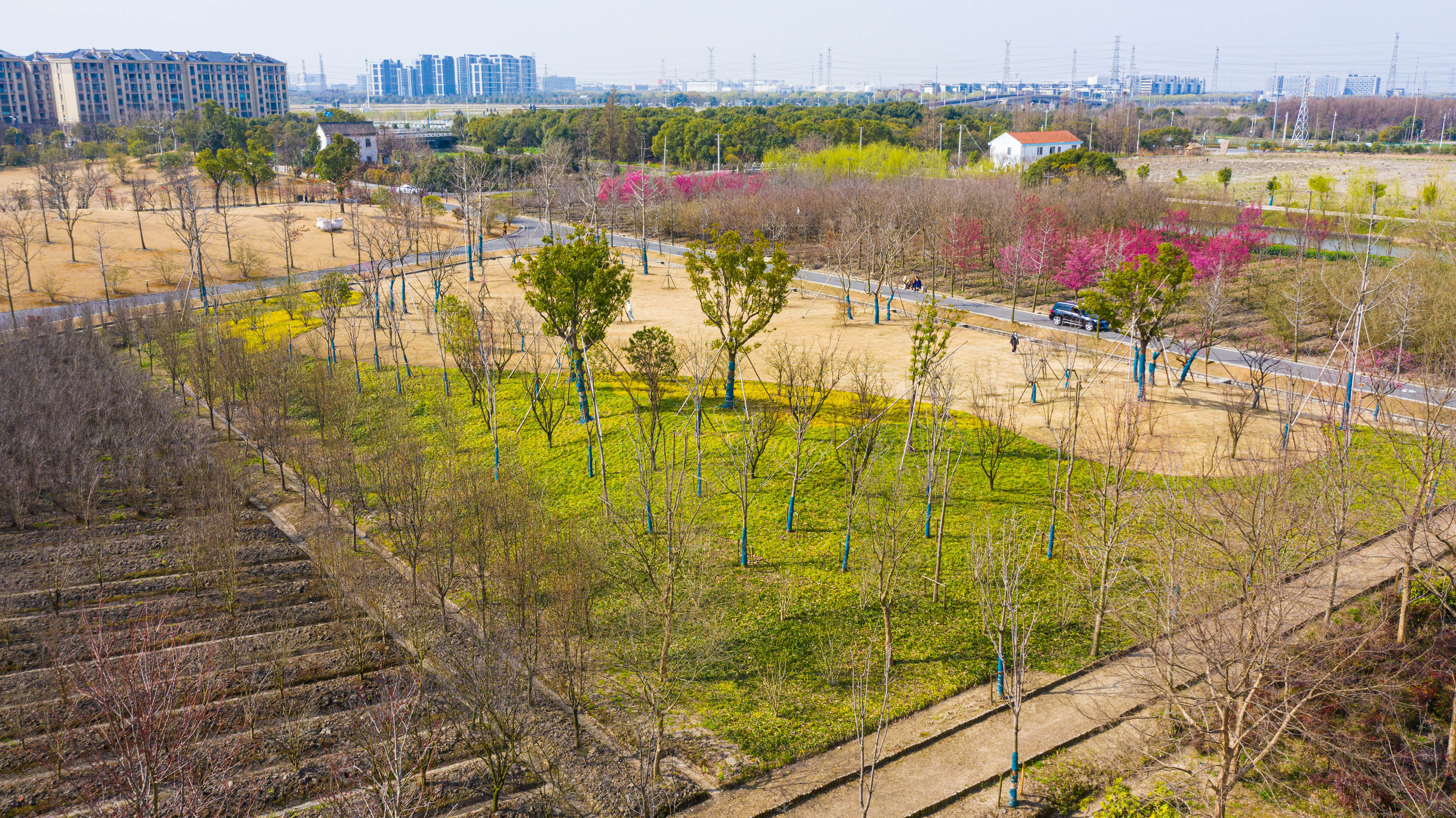 植,志也,代表着拼搏;树,绿色,象征着生命。前年4月,区委书记程向民同区援鄂医疗队医护人员和部分公安、交通、社区、医护、环卫、新闻工作者、志愿者等42名抗疫一线人员代表在广富林郊野公园挥动铁锹,培土、浇水,一起栽下一片“健康林”,希望通过这一举动,让伟大抗疫精神在松江生根发芽,成长为一片“希望林”。时隔两年,记者来到这片“健康林”看到,当年种下的梅花树茁壮成长,在这个春日里,枝头上已绽满了花朵,开得正艳。而此时,当年的抗疫英雄们在使命的召唤下仍然各自坚守岗位,冲锋在一线,无暇欣赏这片美好。“他们都忙碌在自己的岗位上,有的去了隔离点,有的去了采样点,有的坚守在医院,都很辛苦。”区援鄂医疗队队长柴丽莉与记者视频连线时表示,期待在疫情结束后能和队友们一起前往欣赏,重温“健康林”的美好回忆。