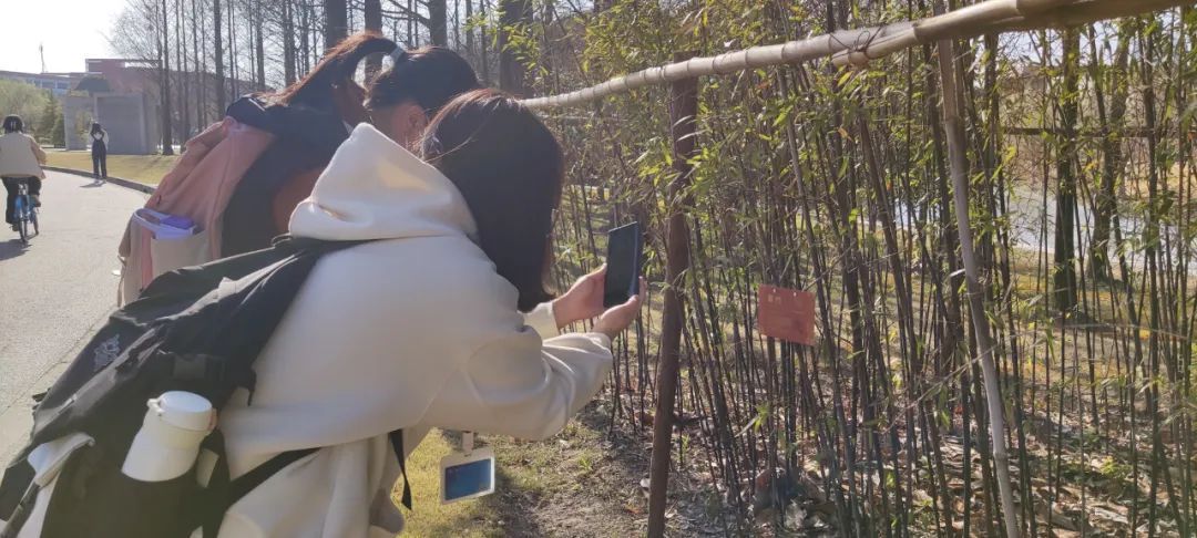 扫描铭牌上的二维码,就可以进入学校自主开发的“芳秾”小程序(取自《木兰花慢·杜鹃声渐老》中的“且持杯秉烛,天香院落,同赏芳秾”),查看植物的相关信息。