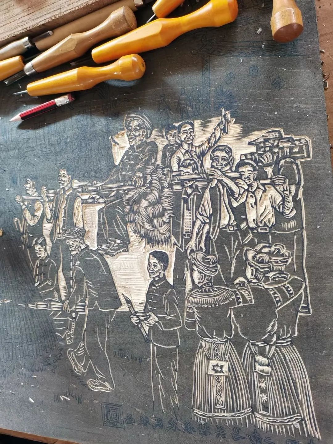 据了解,马关壮族农民版画经过百年的发展,随着创作力度不断加大,版画作品越来越多,但由于受农村居住条件的限制,创作者对母版的保护力度不够,很多母版受到了一定程度的损坏,部分母版和版画面临绝版,加之保存母版需要大量的仓库来存放,就目前马关县还不具备这种存放条件,这给版画保护工作带来了一定的难度。鉴于以上情况,为更好地抢救和保护非物质文化遗产代表性项目,进一步深化边疆与内地文化交流,拓宽民间文化艺术传播渠道,马关县以上海对口帮扶马关文化发展成果为契机,推动对口帮扶产业援助、文化援助等合作发展,于2021年完成400幅版画资料收集并完成版画画心托裱工作。届时,版画作品将寄往上海完成版画扫描制作,形成版画数据库进行保存,以更好地对马关壮族农民版画进行抢救和保护。