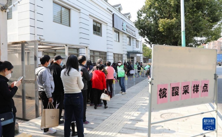 3月11日,市民在上海市闵行区七宝社区卫生服务中心华林社区卫生服务站排队进行核酸采样。