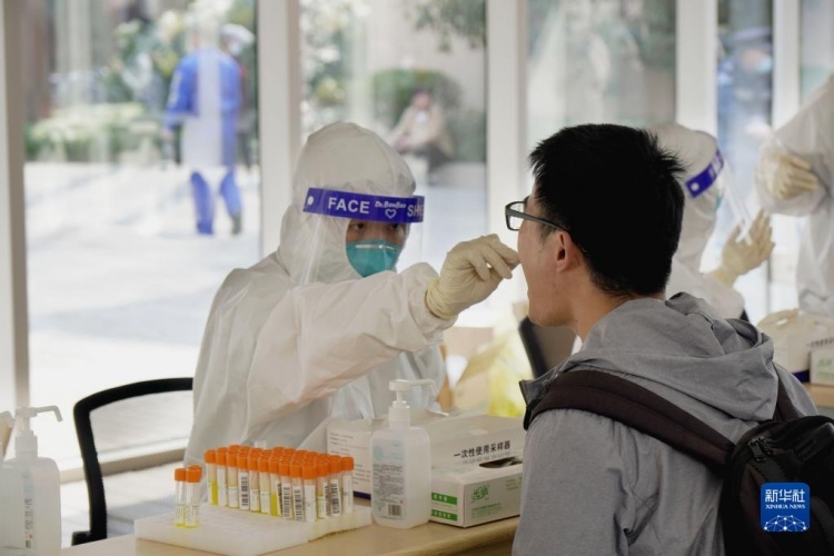 3月11日,复旦大学第二附属学校师生接受核酸采样。