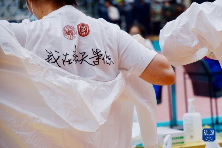 3月11日,复旦大学邯郸校区学生接受核酸采样。
