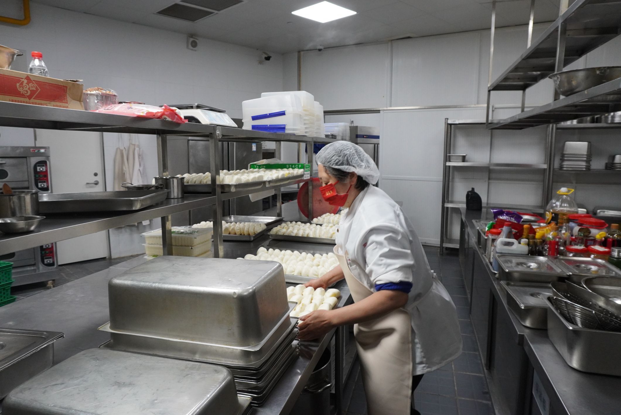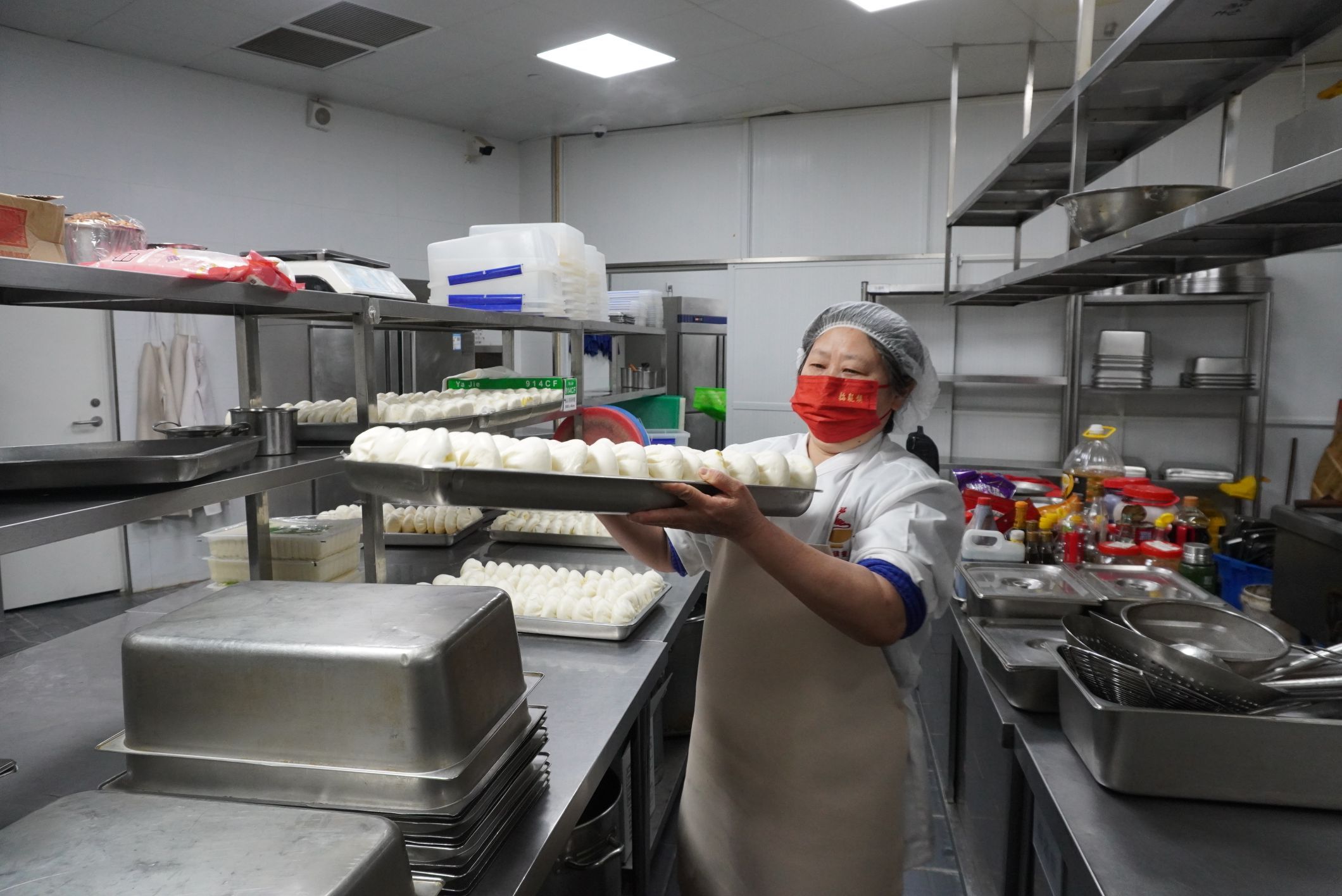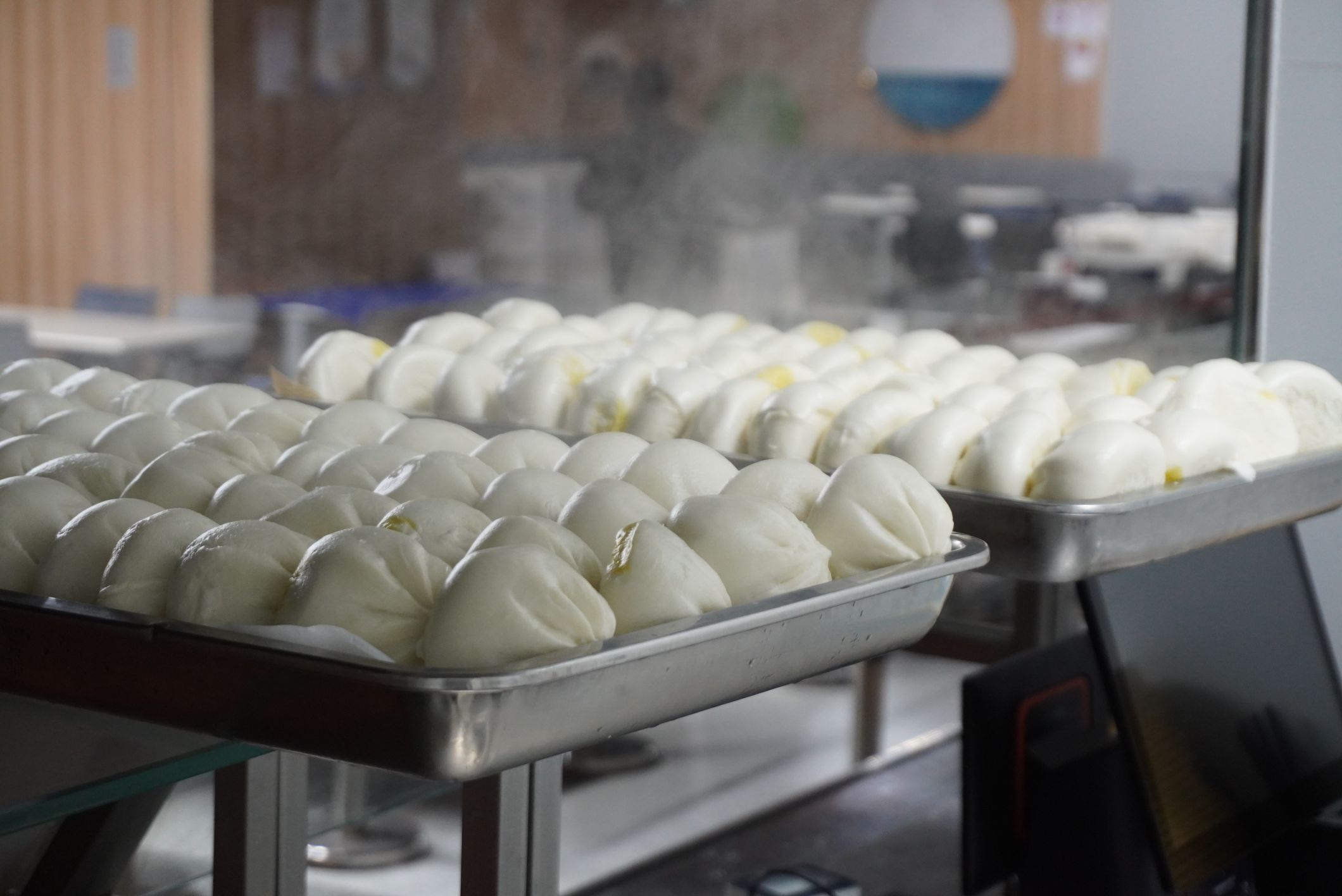 3点,一批批包子开始在后厨的蒸笼里进行加热。