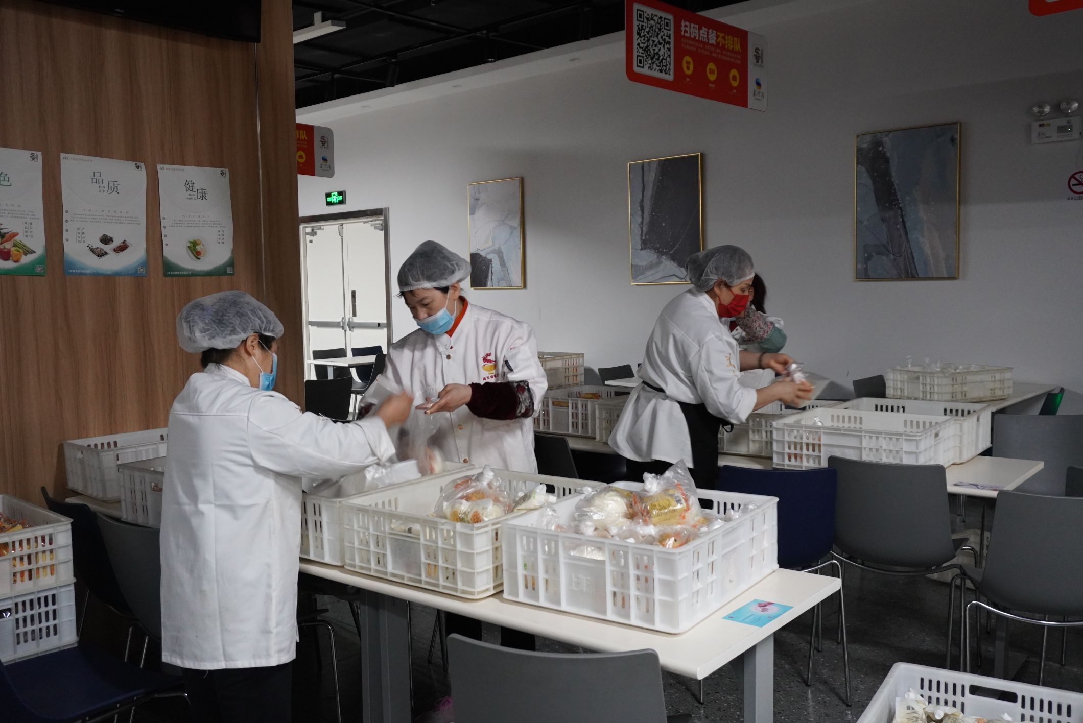 而食堂的工作人员们则开始马不停蹄的进行本职工作--为新理想大厦白领们制作午餐。“凌晨两点到岗开始忙隔离点早餐,一直到白领们午餐结束后做好食堂收尾工作,每天工作近12个小时,每个人都毫无怨言,大家都是最棒的。”餐厅经理张斌为并肩作战的同事点赞。