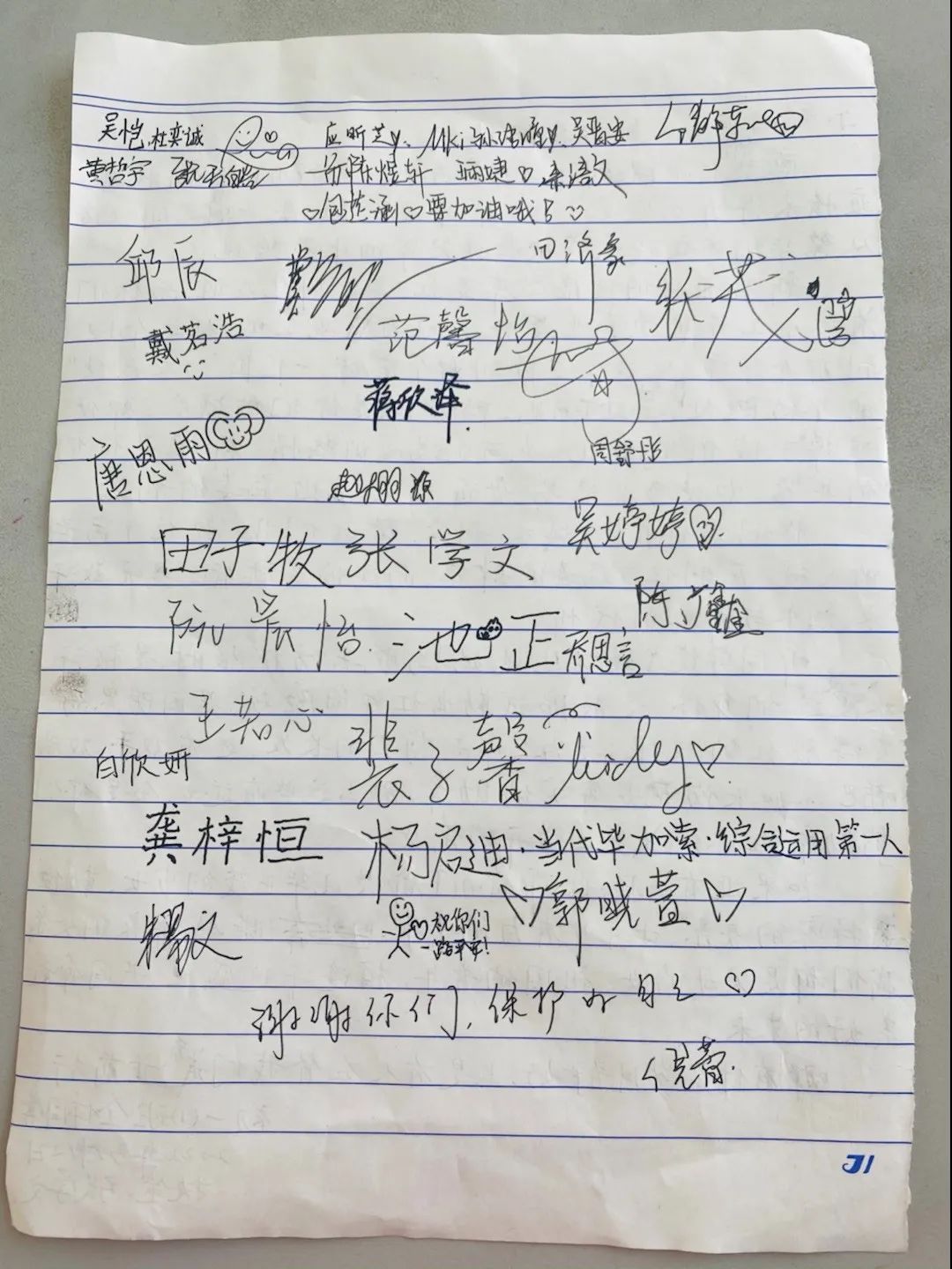 昨天一大早,学生们来到学校。除了强调一些做核酸的注意事项,班主任倪蕾老师还关照学生们,医护工作人员连轴转地守护人们,特别辛苦,嘱咐孩子们做完核酸之后记得说声谢谢。灵感忽然而来,男生张学文接受全班委托执笔写下这封信。倪老师原本想着时间有限,只言片语表达下感谢就好,没想到认真的张学文还采访了同学,“因为他的妈妈是名白衣天使,去过隔离点工作。”全班师生在这封信的反面签下了名字,有2位同学因为居家隔离没能来到现场,由好友代签。写完信后,同学们又用手头有限的材料,找到了1张红色的彩纸,折了一颗大红爱心,一起装入了信封中。