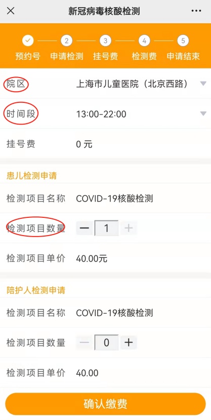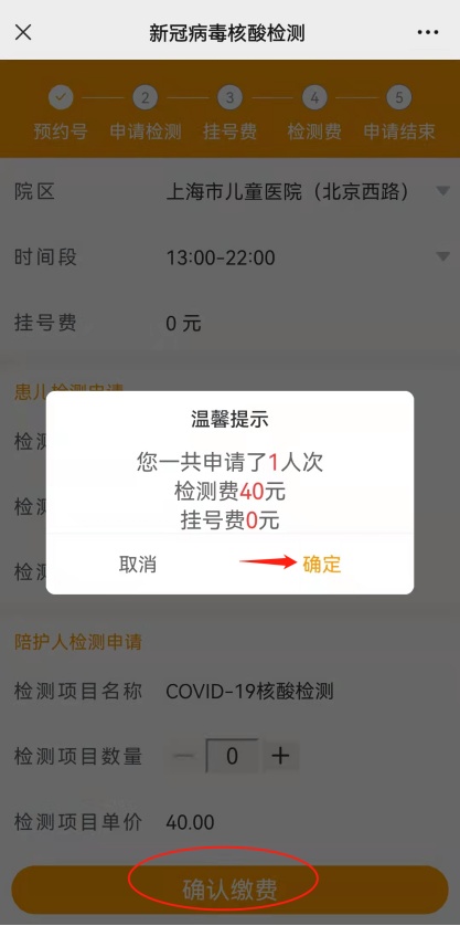 第三步:支付核酸检测费用,自费患者按照提示在线支付,儿童医保患者通过随身办小程序支付,成人目前只支持在线自费结算。在线支付的发票,进入上海市儿童医院互联网医院首页——【电子票据】中查询和下载。