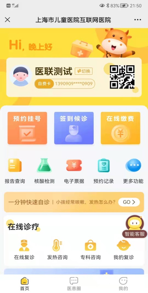4、智慧医疗服务就医更高效。建议通过上海市儿童医院互联网医院使用“精准预约”、“智能预问诊”、“医疗付费一件事”、“电子就诊卡”、“ 线上申请核酸检测”等便捷就医服务。通过手机提前预约就诊、提前采集病史信息、全程手机线上支付,尽量减少在医院停留时间。