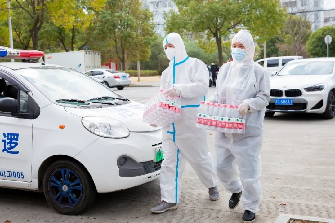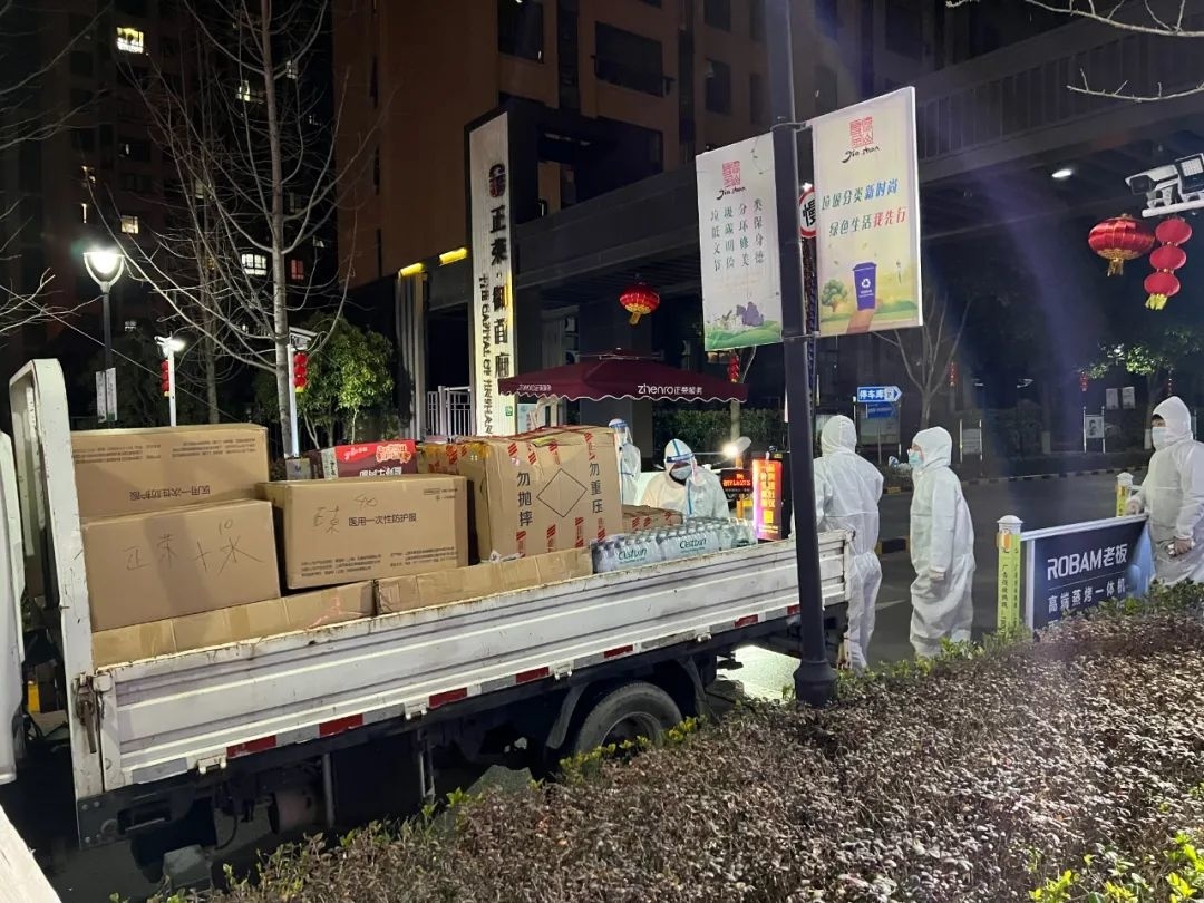 除了黎国权,防疫现场还有很多“摆渡人”。当遇到订单需求量大,不能及时配送的情况时,他们就用自已的私家车以最快的速度将物资配送至点位。而且无论多晚,这群“摆渡人”仍会坚持做好物资的出库、运送、卸载等工作。
