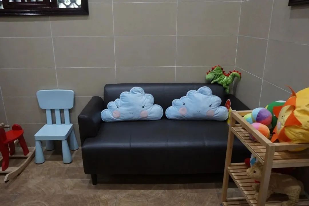 为方便亲子出游,上海古猗园配备了独立的母婴室,面积大约10平方米,就算是一家人一起进去,空间上也是绰绰有余。母婴室内的设备也是及其贴心且丰富的,除去基本设备——尿布台、哺乳椅、盥洗台、屏风隔断外,还配备了音响、空调、消毒设备、新风系统、冰箱、饮水设施、应急医药箱、香薰、各类玩具、书籍、漫画......以满足不同年龄小朋友的需求。同时为了保证安全,母婴室地面采用了防滑设计,每2个小时会有专人进行打扫和消毒。游客使用一次,就立即保洁一次。