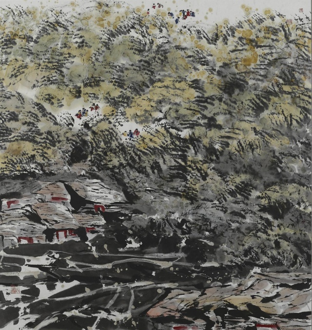 林祥雄的画面一般都很满,但满中有布阵,绵密而疏朗;满中有韵律,潇洒而豪放。