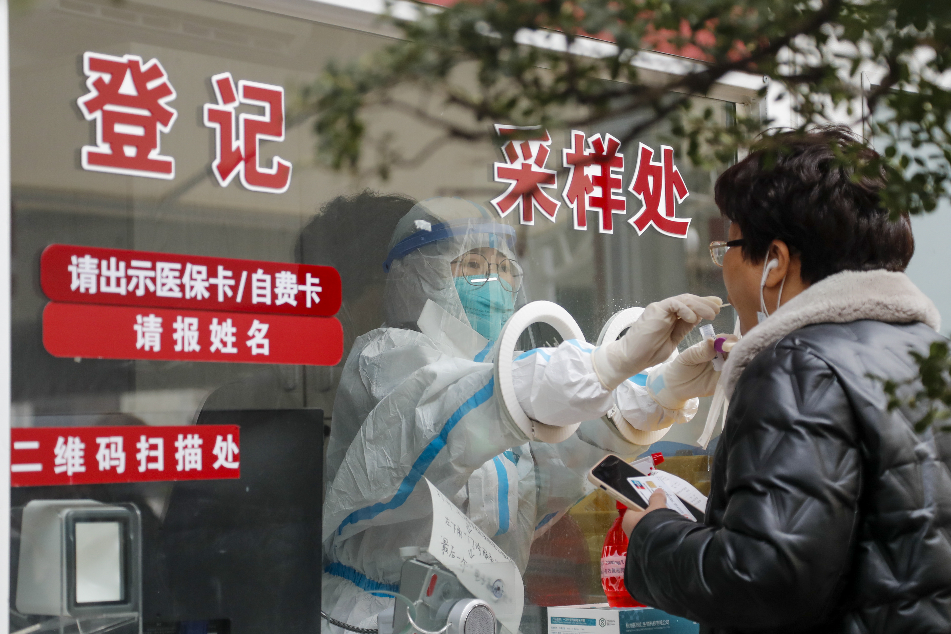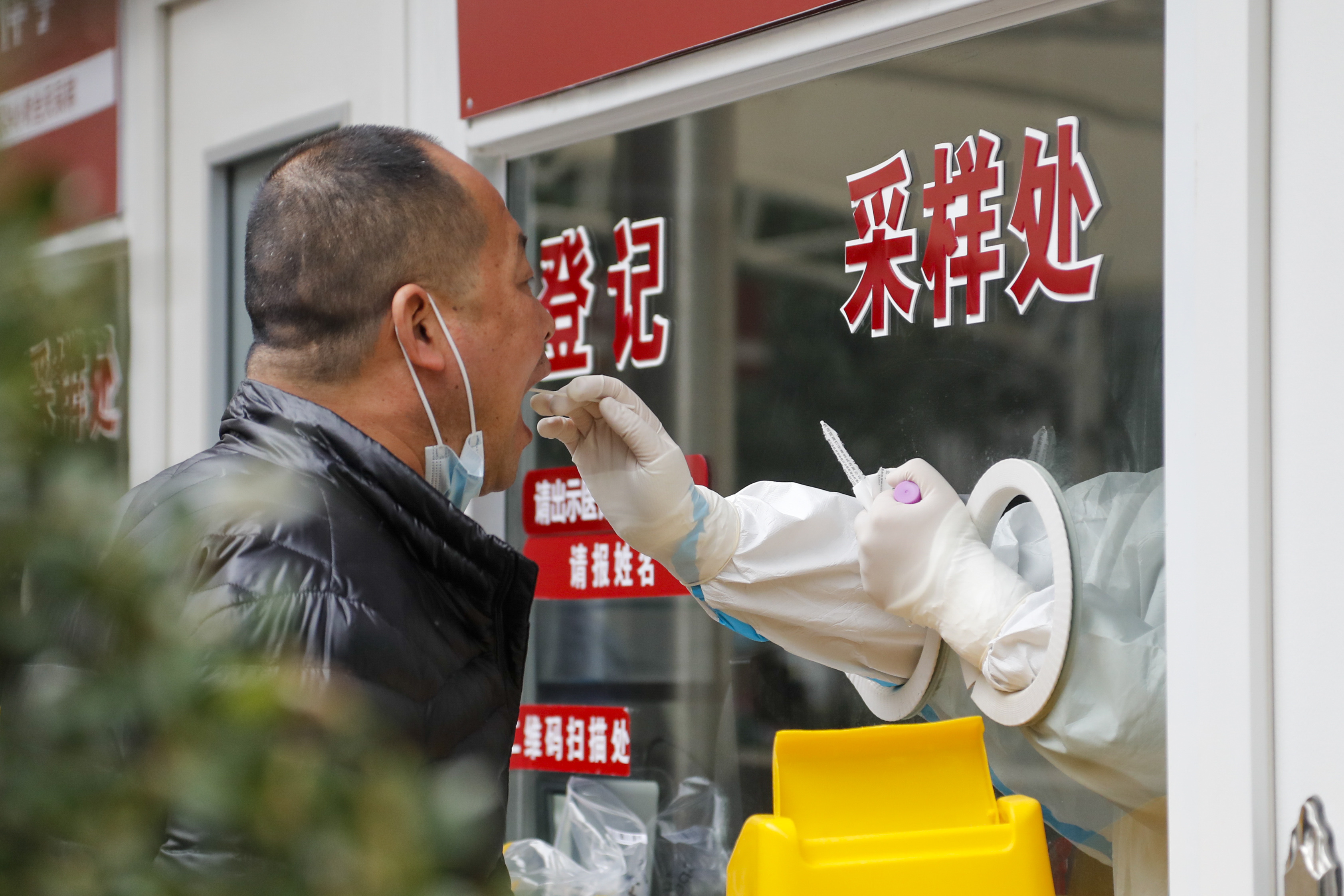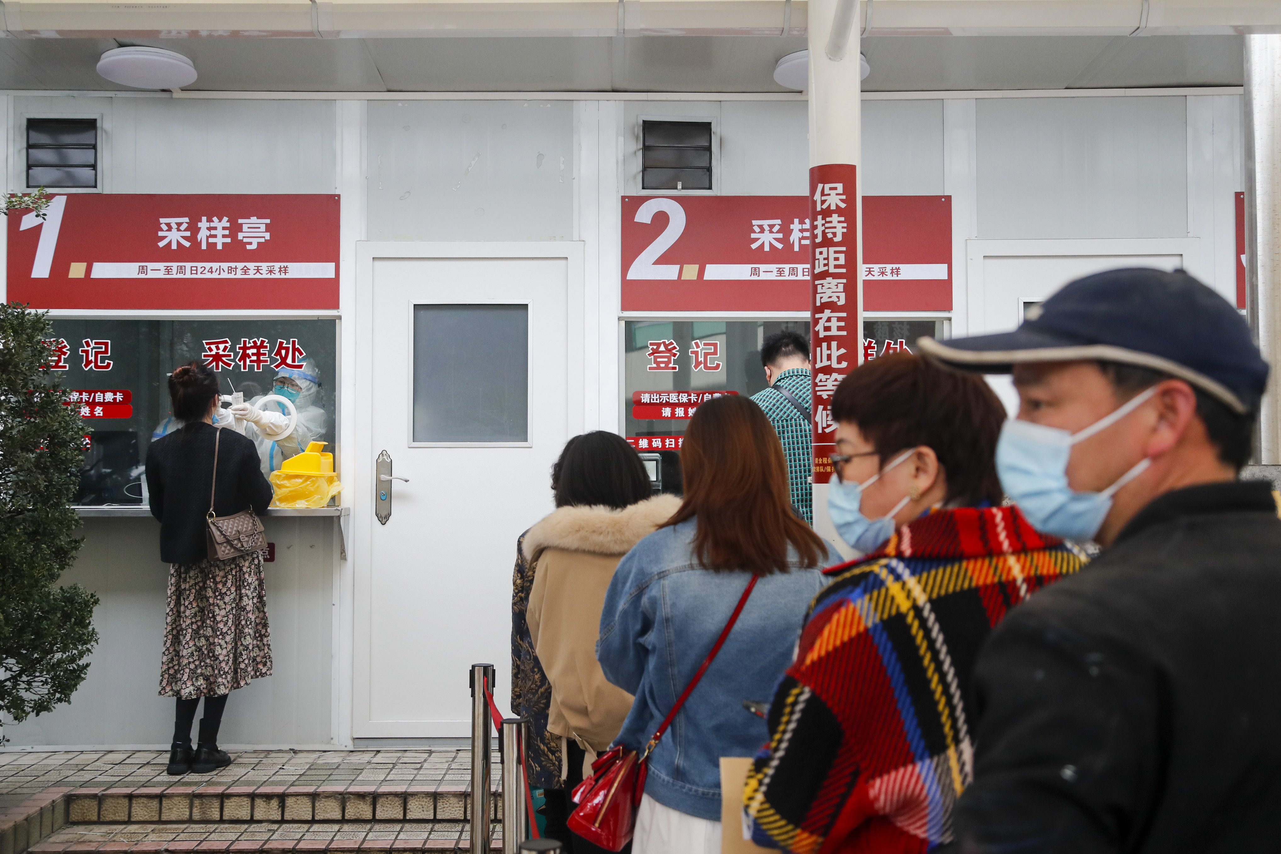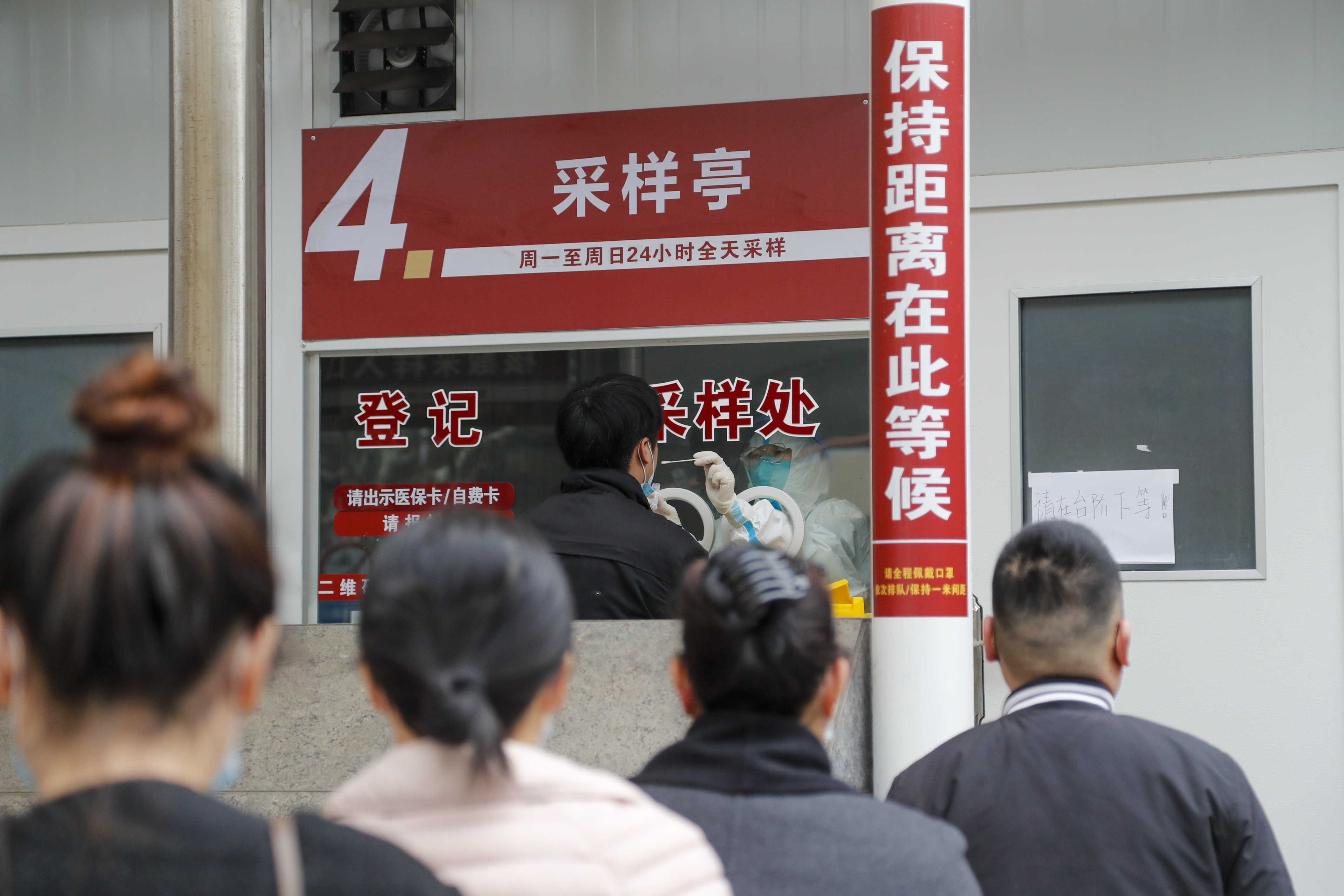 记者在现场看到,等待检测的市民有序地排着队,在出示预约二维码后,就可以进行核酸检测,整个检测过程大约5分钟。