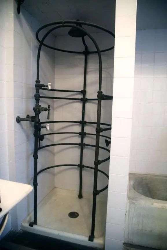 在刺绣工作室里,有一个极具特色的欧式卫生间,它的镶嵌花玻璃窗、铜质淋浴器、铸铁浴缸,都与这座建筑一样,已有百年历史。