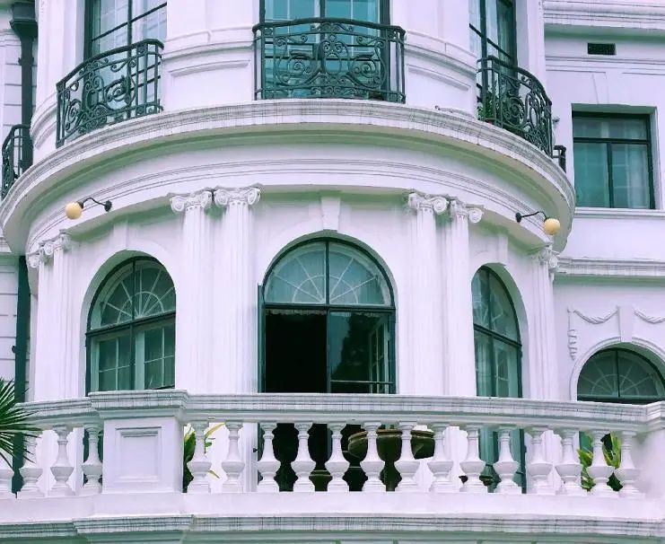 建筑门窗的框上均有浮雕装饰,二层窗的方框上部为锁石状雕饰。一、二层间均有较深厚的腰线,呈现古典的三段式划分。