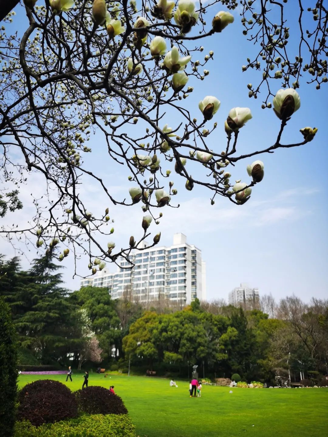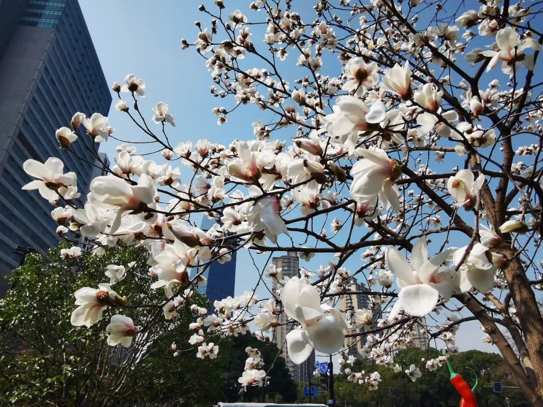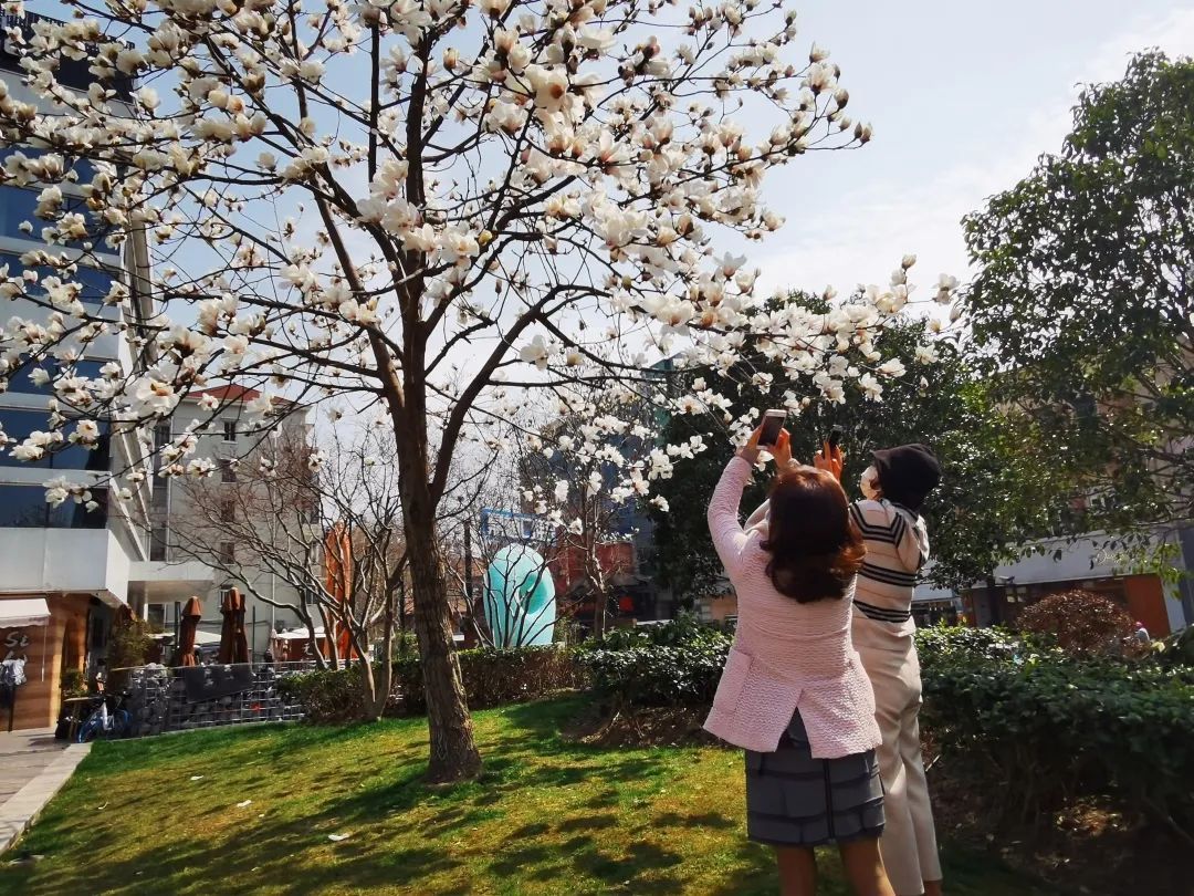 刚刚过去的一周,上海持续晴热天气,虽说是入春,大家体感却如同初夏,在长宁,各种早春花卉竞相开放,其中就数白玉兰花开得最绚烂。