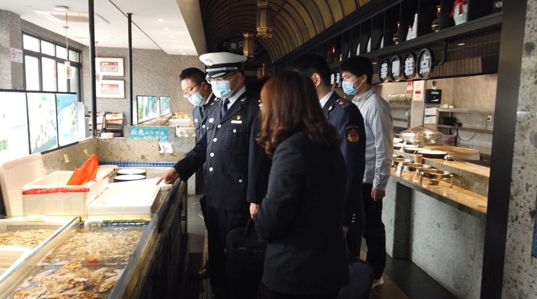 在城内餐饮店,执法人员查看了“海刀鱼”的进货台账,并对水产销售区域进行了详细检查。