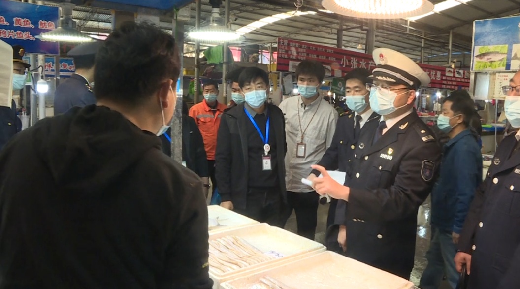 一大早,执法人员来到三沙洪农贸市场,对水产商铺进行详细检查。