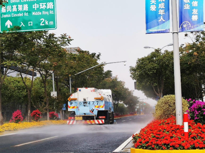 道路冲洗是本市道路保洁的重要一环,目的是为了清洁路面、抑制扬尘,让道路环境面貌始终保持良好的状态,为市民和游客提供舒适优美的城市环境。