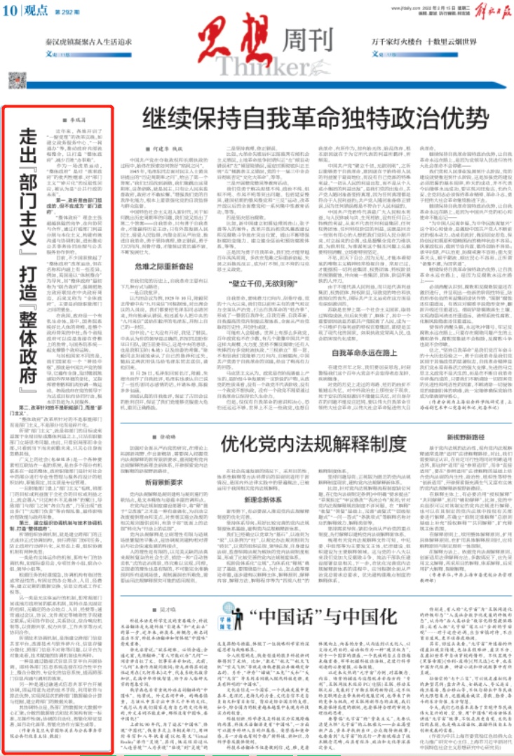 第二,改革针对的不是职能部门,而是“部门主义”。
