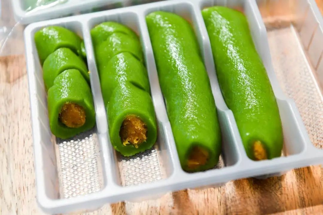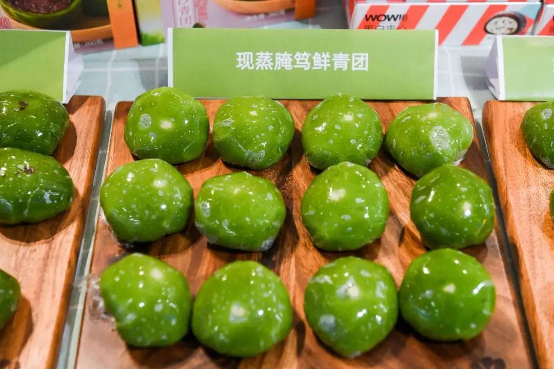 豆沙青团是青团中的地位作为稳固的经典口味,今年,不仅有来自老字号杏花楼、沈大成的经典豆沙青团,还有现蒸的豆沙青团。豆沙青团有着不可撼动的地位,长年稳居销售榜首。