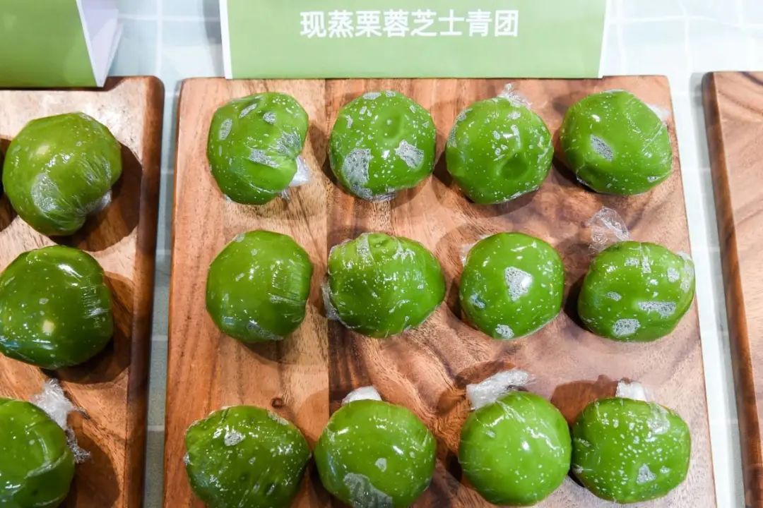 栗蓉芝士青团是“花花栗子”的衍生产物,栗蓉来自迁西板栗,将优质的迁西板栗加工成栗蓉,包进青团中,并且跃居成为最受欢迎的青团之一。