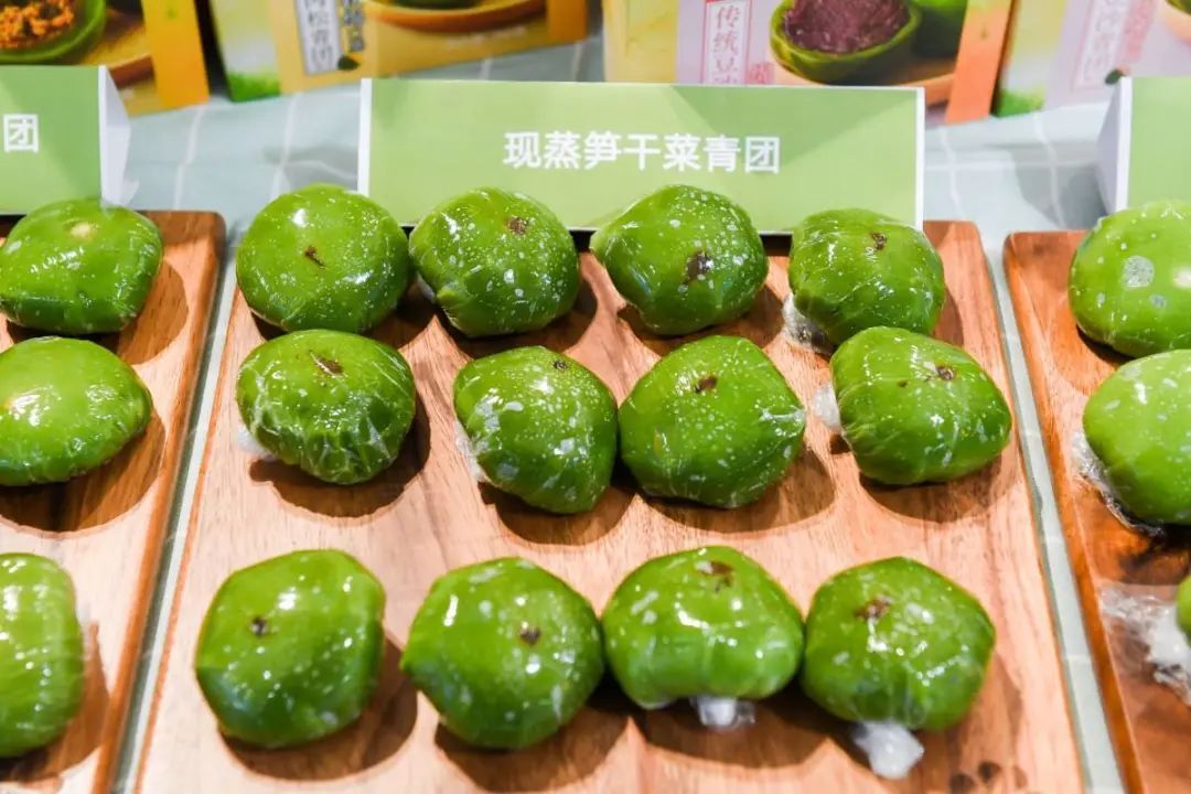 这是腌笃鲜青团后,又一个针对咸口、肉食爱好者推出的青团。研发团队尝试了浙江绍兴一带近乎所有的梅干菜,最终找到了一款干香味更浓郁的梅干菜作为这款青团的主要原材料,一直保持至今。咸鲜的口味,笋和梅干菜的嚼劲让这款青团成为南方城市尤其是江浙地区备受欢迎的青团。